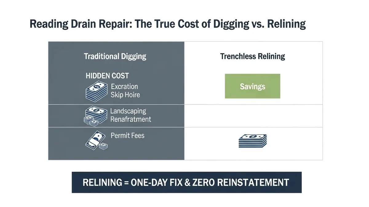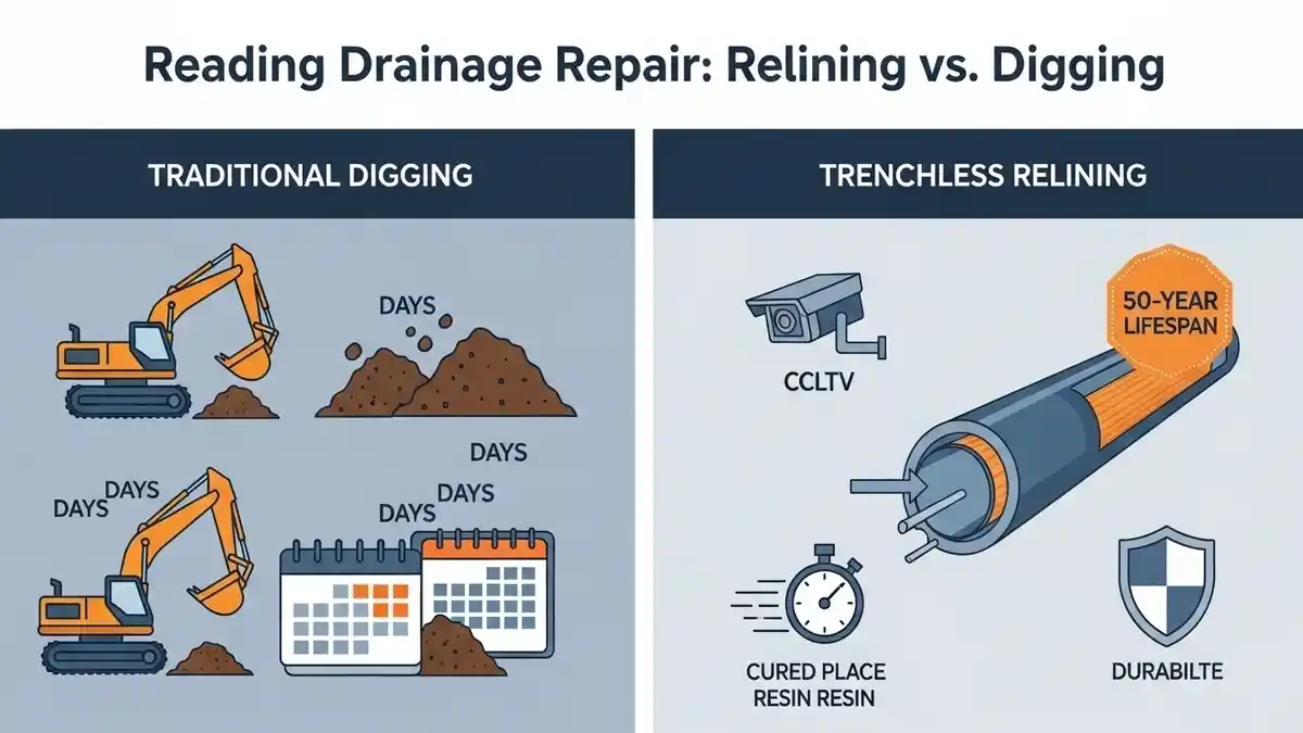 Avoid costly, messy excavations. Compare Pitsea Drain Relining vs Digging to save your home, time, and money with our expert, minimally invasive, and durable no-dig repair solutions for local drains.