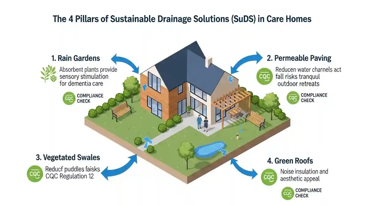 The future of sustainable drainage solutions CQC care home design is the integration of SuDS (Sustainable Drainage Systems). In Pitsea, Policy EN18 of the Local Plan encourages SuDS to manage surface water runoff, which often plagues the surrounding area.